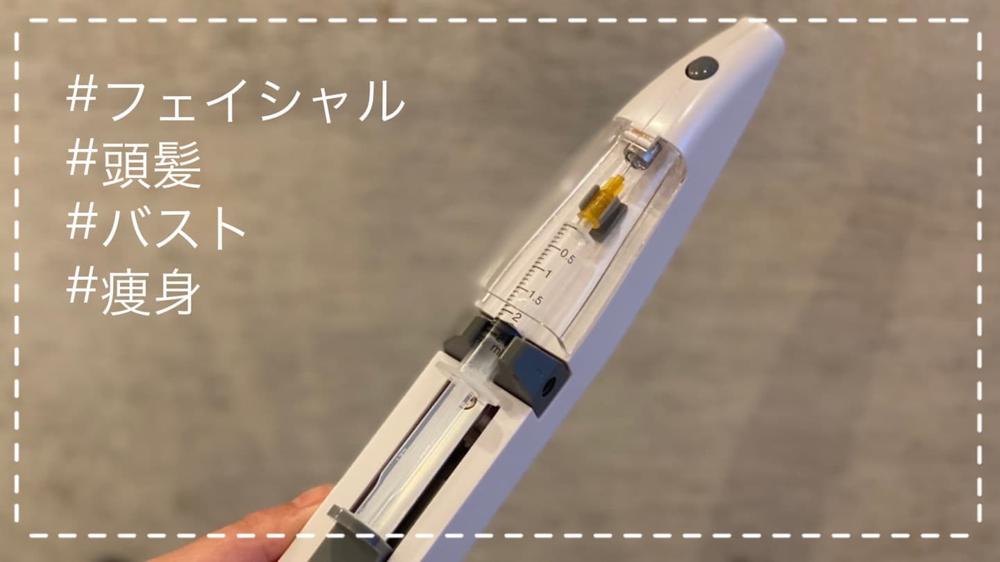 ⇒針を使わずに空気の力で美容成分をお肌の奥まで届ける施術です。有用成分を霧状にして導入していきます。高圧ジェット&ナノ化技術により、気になる部位へ有用成分を0.2~0.3mmの深さに届け、様々なお悩みにアプローチします。