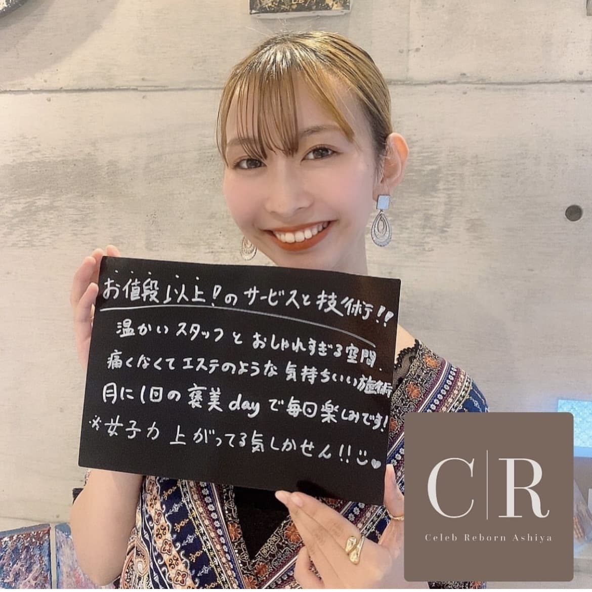 平素よりCelebReborn芦屋店をご愛顧いただき、誠にありがとうございます。 この度、CelebReborn芦屋店は2025年7月31日(木)をもちまして、CelebReborn大阪ボーテ店と統合することとなりました。 芦屋店をご利用のお客様には、ご不便をおかけいたしますが、今後はCelebReborn大阪ボーテ店にて、引き続きご満足いただけるサービスを提供できるよう努めてまいります。 今後も、お客様にご満足いただけるよう、CelebReborn大阪ボーテ店にてスタッフ一同、より一層のサービス向上に努めてまいります。皆様のご来店を心よりお待ちしております。